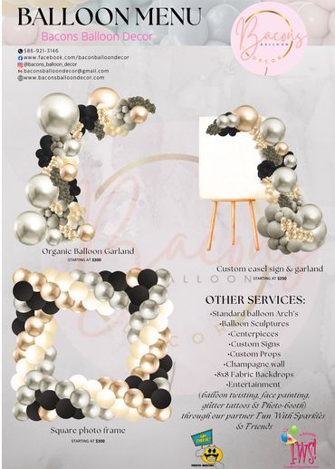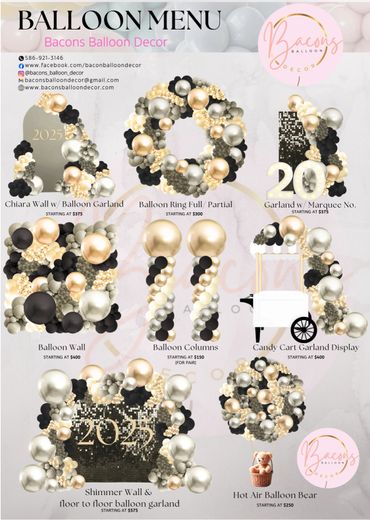 Here you will find my standard menu with some popular design options! Designs are not limited to what is shown. I specialize in custom decor for any occasion both large and small. Click "Find out more" to contact me for a FREE consultation
